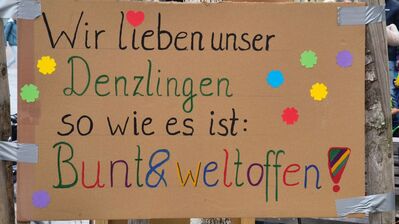 Am Freitag machte eine WhatsApp-Nachricht die Runde: die AfD plant morgen einen Stand am Denzlinger Kohlerhof. Am Samstag, 8. November 2025, war die AfD dort mit einigen Personen und einem Hund vertreten. Ihnen gegenüber standen viele Menschen aus Denzlingen, Freiburg, Waldkirch usw., die friedlich und entschlossen Präsenz zeigten für ein buntes, weltoffenes, Zusammenleben. Mit Plakaten, Infos, Fahnen, Aufklebern, Kuchen, Popcorn, Spielen für Kinder und viel Diskussionsbereitschaft. Als gegen Mittag die Blauen ihr Material zusammenpackten und wieder abzogen, kamen von den Bunten Rufe "Wir bleiben!".