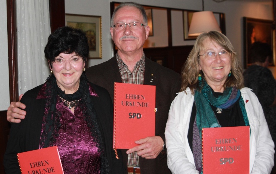 Für 25 Jahre in der SPD wurden persönlich geehrt: Zoja Elchlepp und Hannelore Schiedel, nicht anwesend sein konnten Thomas Leyser und Peter Eisenberger.