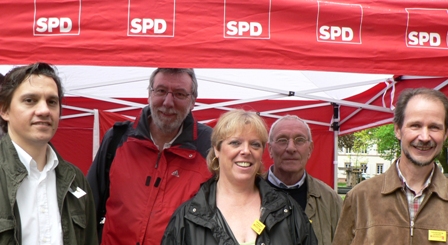 „ Es ist toll, dass wir hier mit Vertretern der Gewerkschaft unser gemeinsames Ziel, nämlich gute Arbeit zu fairen Löhnen vertreten können“ freuten sich Sabine Wölfle und Johannes Fechner. Für beide, wie für die SPD insgesamt, ist die Forderung nach einem Mindestlohn nicht verhandelbar.