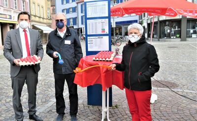 Auch wenn es etwas gedauert hat: Am vergangenen Samstag übergab die Vorsitzende der Denzlinger SPD, Elfriede Behnke, die Preise aus einer SPD-Aktion im vergangenen Landtagswahlkampf. Damals schaltete der SPD-Ortsverein insgesamt vier Anzeigen in vHzH, in denen je vier bis fünf Begründungen für einzelne Wahlziele der SPD Baden-Württemberg vorgegeben waren. Mindestens eine davon war ein Scherz. Aus den insgesamt sieben Einsendungen ergaben sich fünf richtige Antworten.