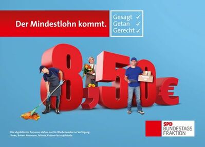 Der SPD-Kreisverband freut sich, dass mit der Einführung des gesetzlichen Mindestlohns eines der wichtigsten SPD-Ziele in der laufenden Wahlperiode im Bundestag beschlossen wurde: "Mit dem Beschluss zum Mindestlohn sind Dumpinglöhne nicht mehr möglich", so SPD-Kreisvorsitzender Fechner und seine Stellvertreterin Sabine Wölfle übereinstimmend.