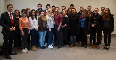 23 Schülerinnen und Schüler der Emil-Dörle Werkrealschule Herbolzheim besuchten im Rahmen ihrer Berlinfahrt am 12. Februar den Reichstag in Berlin. Dabei gab es neben dem Besuch einer Plenarsitzung auch einen Informationsaustusch mit dem Emmendinger Bundestagsabgeordneten Johannes Fechner. Die Schüler waren gut präpariert mit etlichen Fragen an den Abgeordneten von Baden nach Berlin gereist. Das etwa einstündige Gespräch im Reichstag drehte sich um Gemeinsamkeiten und Unterschiede der Parteien der Großen Koalition, die Einführung einer Maut für Ausländer in Deutschland, die Abschaltung des KKW Fessenheim und die Energiewende.